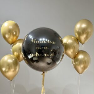 Уточните размер вашей скидки у менеджера!Огромный шар-баблс 80 см с розовым или голубым конфетти.Надпись может быть любой. Наполняем все шары чистым гелием и обрабатываем специальным составом, чтобы они дольше летали.