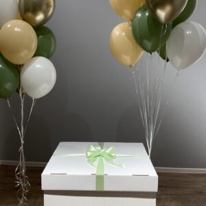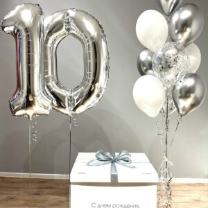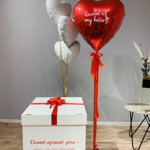 В стоимость набора входит:- Большая коробка 70х70х70 см с нанесенными поздравительными надписями