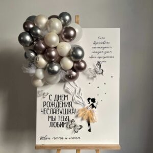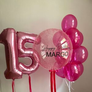 • Шар “Баблс дабл стафф” 70 см + надпись + ленты – 1 шт