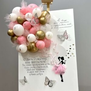 Цвета шаров, конверт и надпись могут быть любыми.