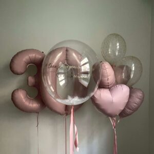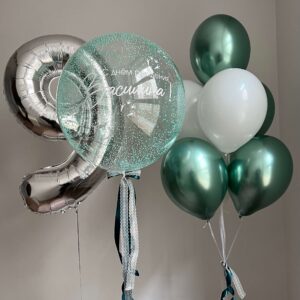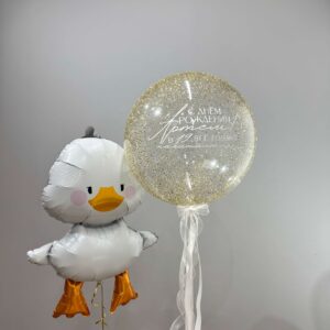 • Шар “Баблс дабл стафф” 70 см + надпись + бантики – 1 шт
