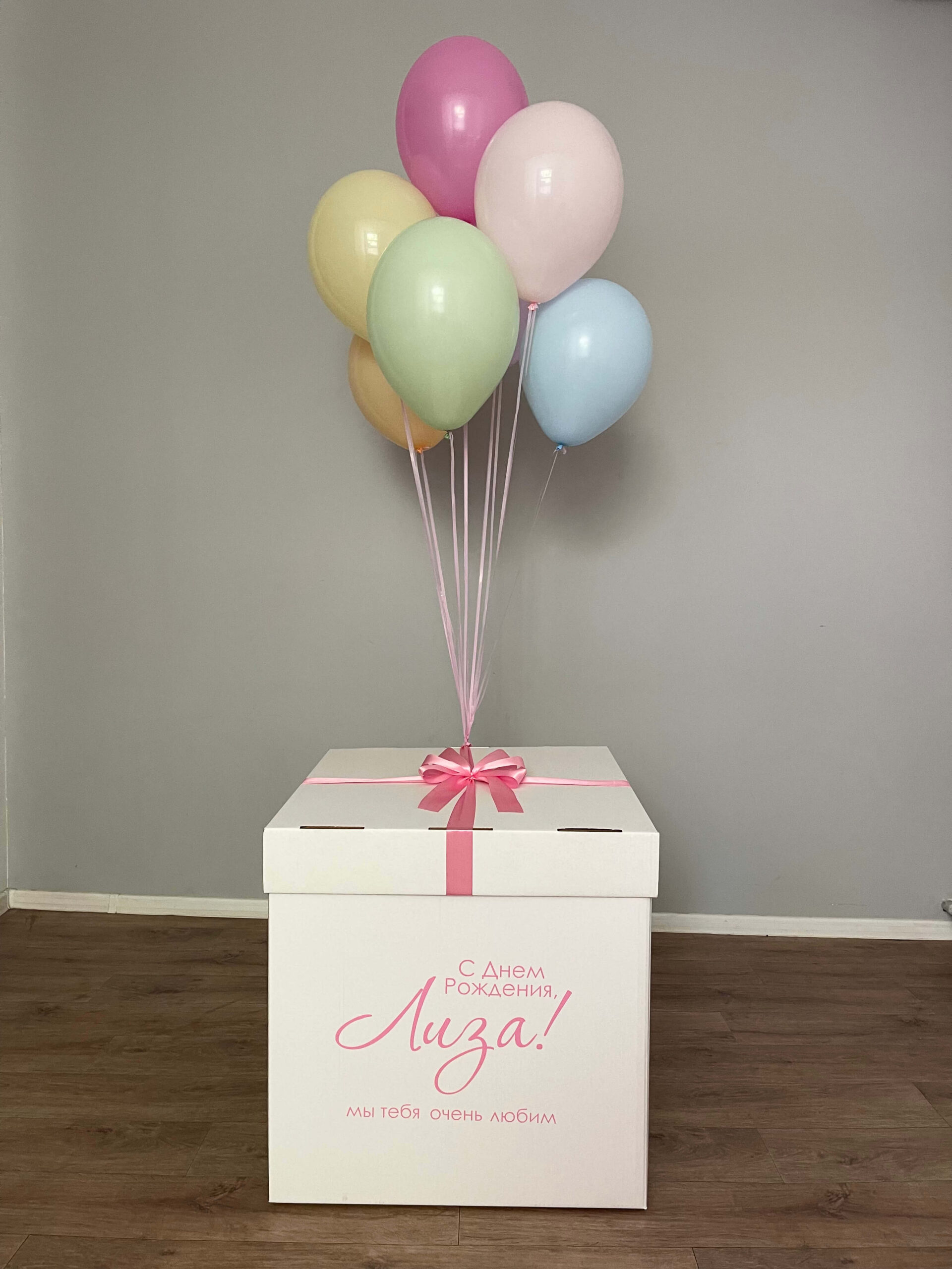 - Большая коробка 70х70х70 см с нанесенными поздравительными надписями