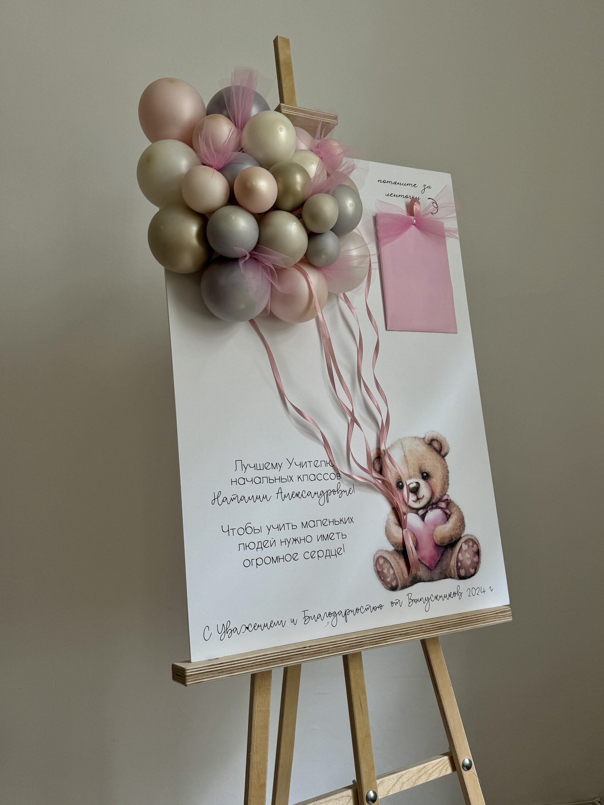 Цвета шаров, конверт и надпись могут быть любыми.