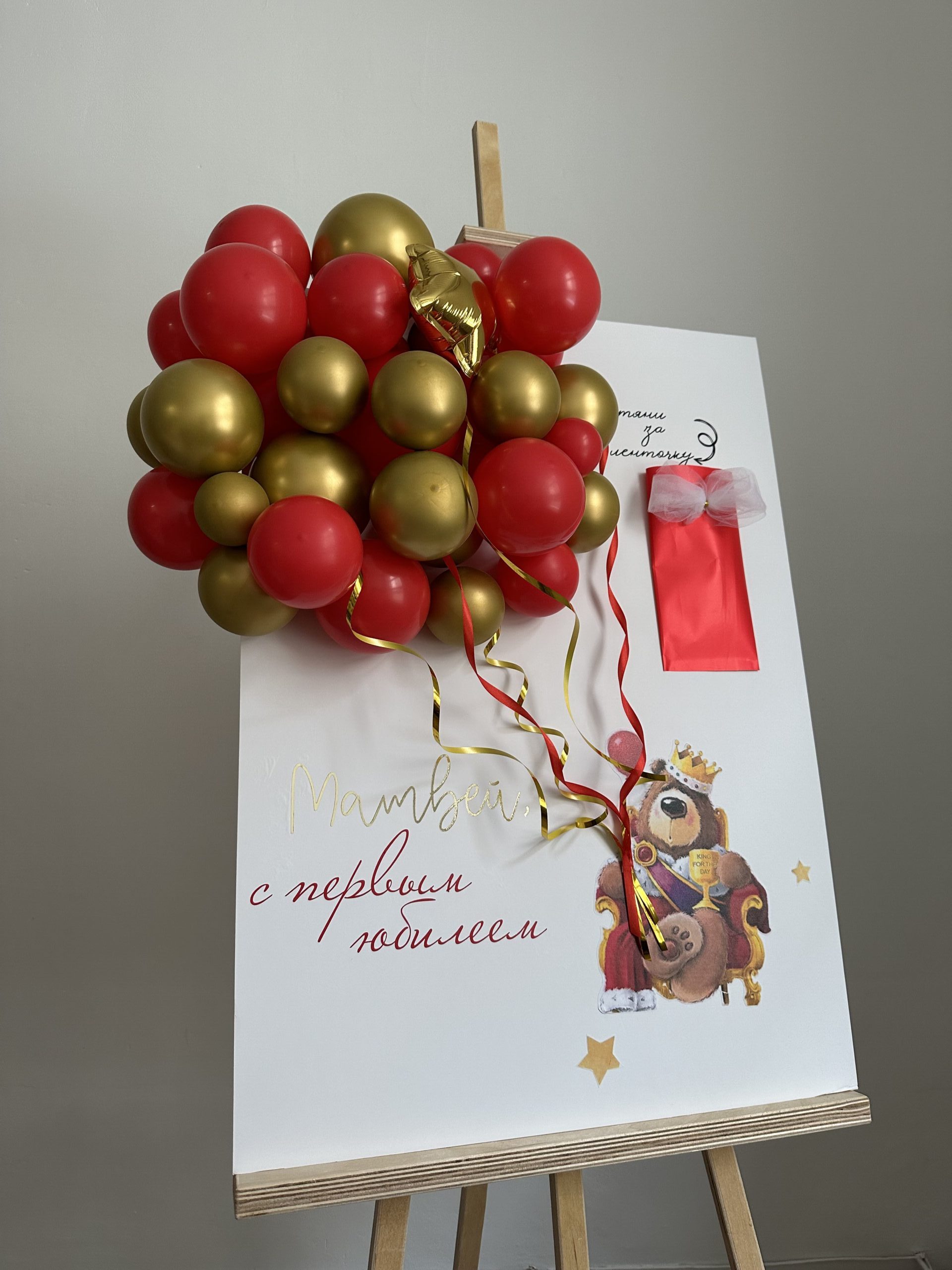 Цвет ленты и состав воздушных шаров может быть любым на ваш выбор. Все шары наполнены чистым гелием и обработаны для длительного полета.В состав входит:• 1 Фольгированная фигура Коляска