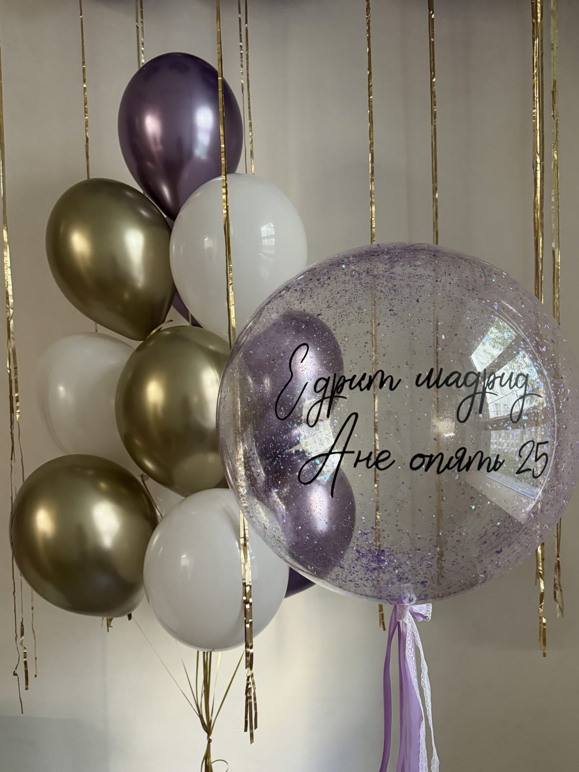 - Шар “Баблс” 60 см + надпись + конфетти- 1 шт