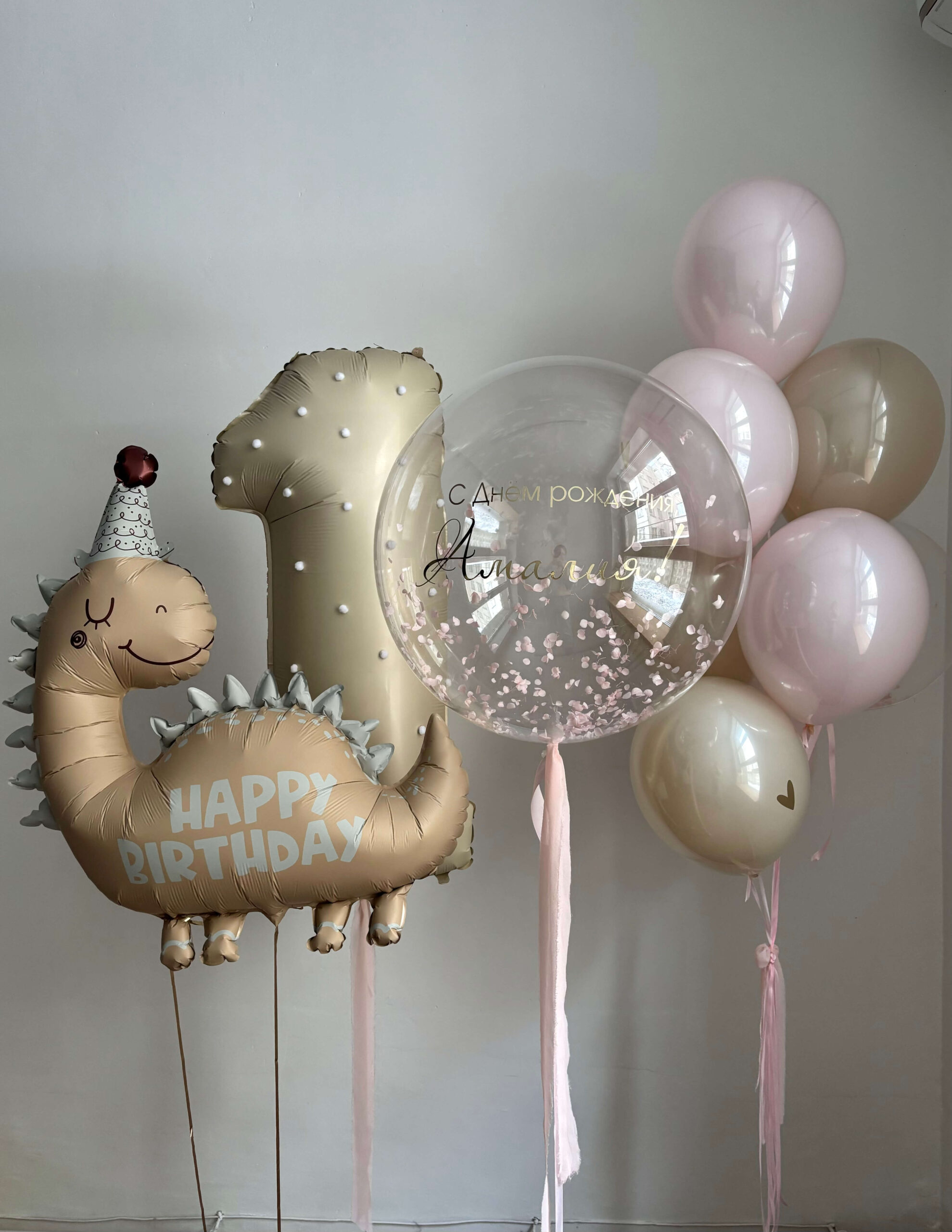 - Шар “Bubbles” 60 см с надписью и сухоцветы – 1 шт