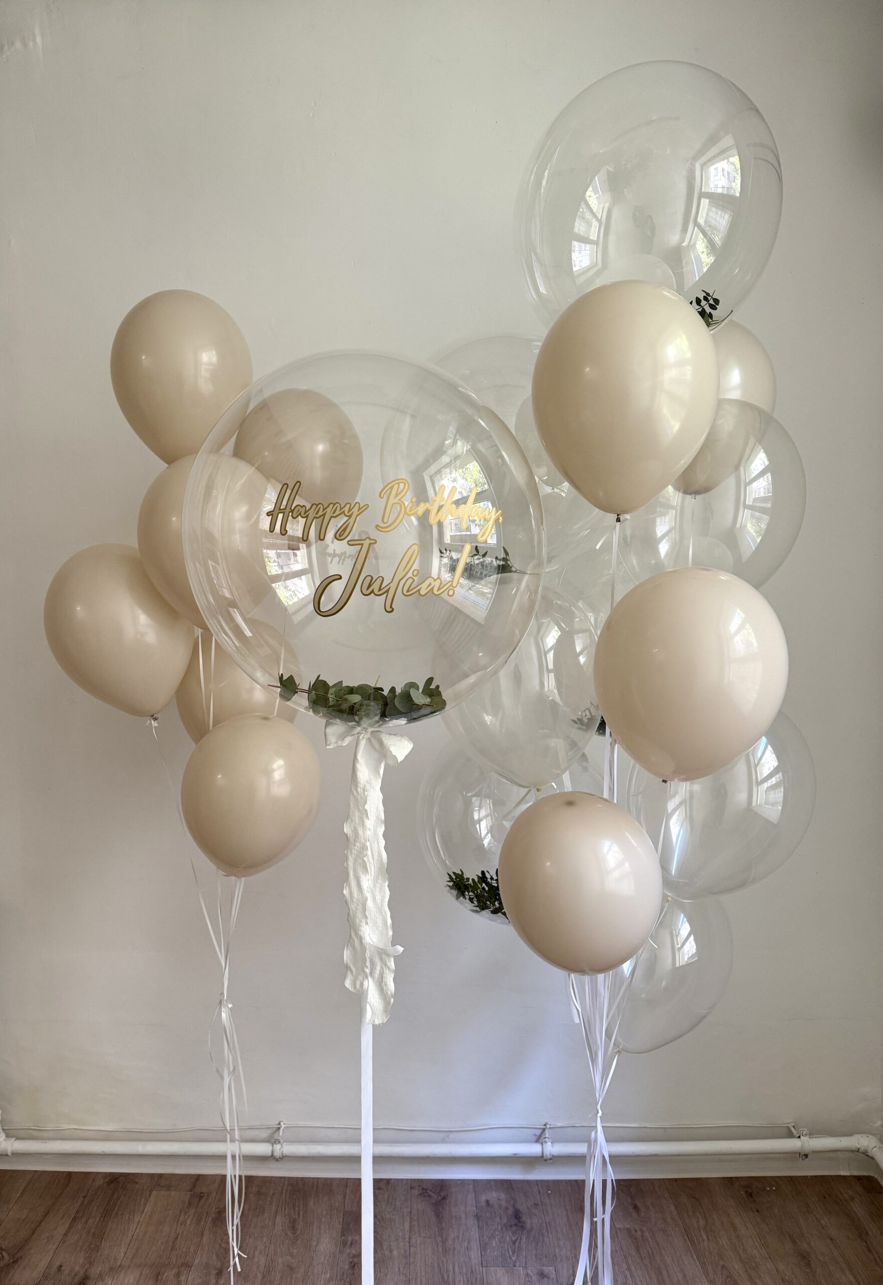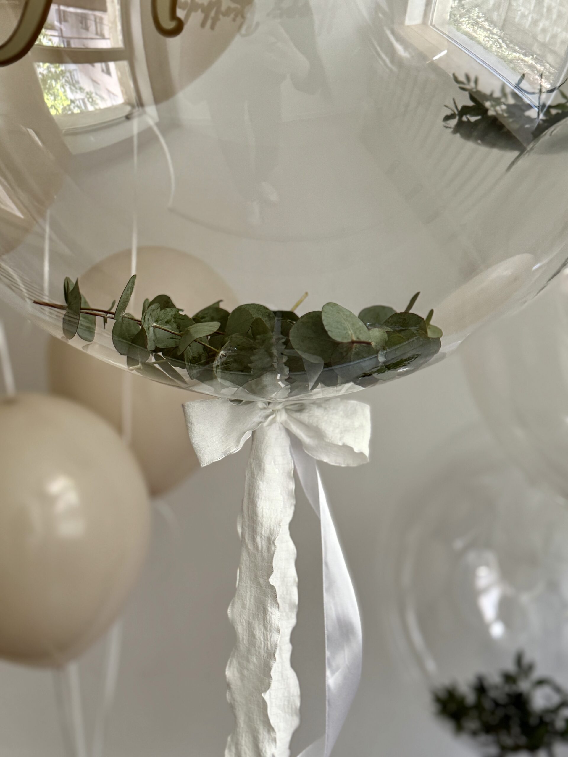 - Шар “Баблс” 60 см + надпись + сухоцветы – 1 шт