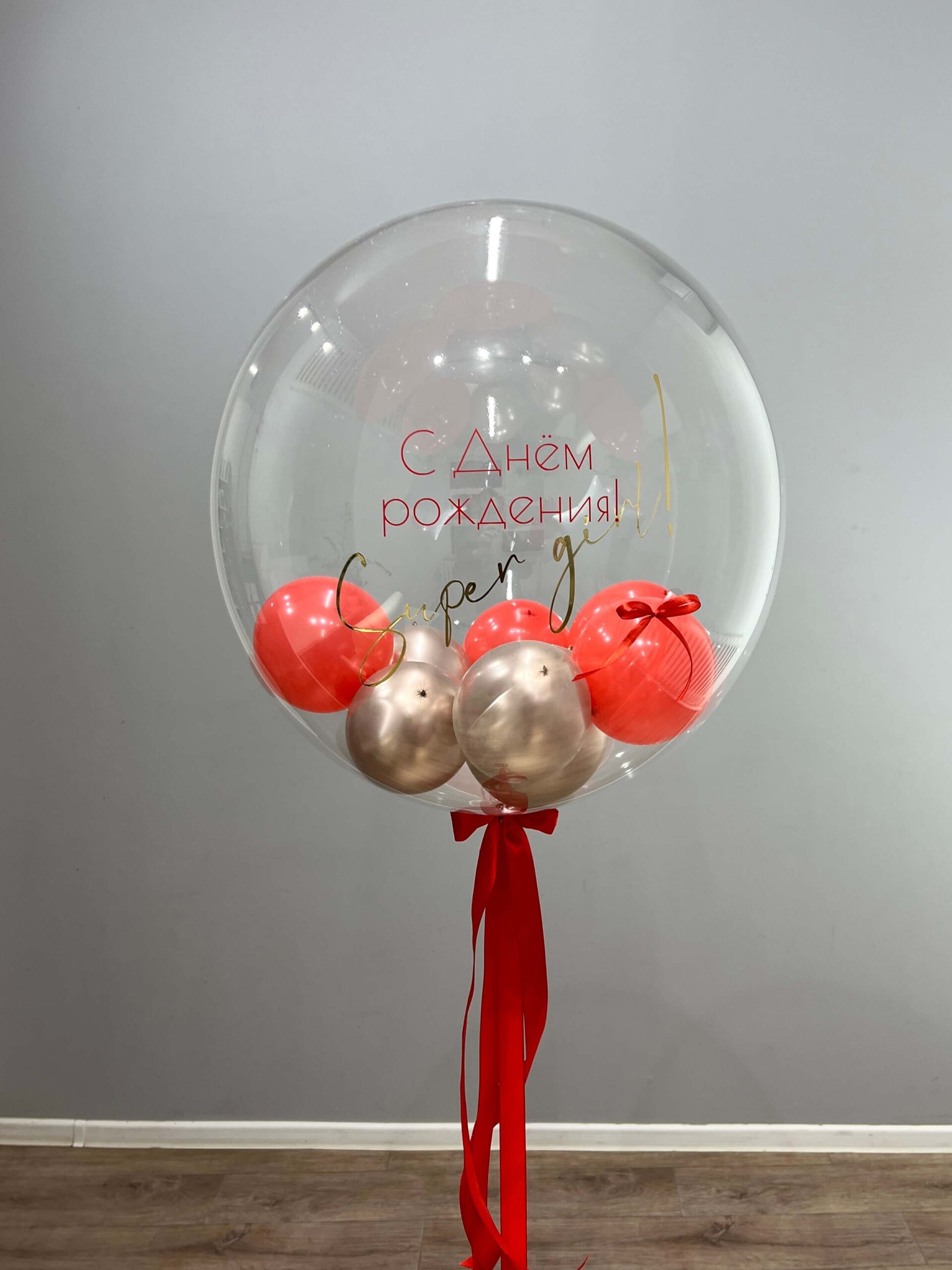 - Шар “Bubbles” 60 см с надписью и мини-шарами – 1 шт