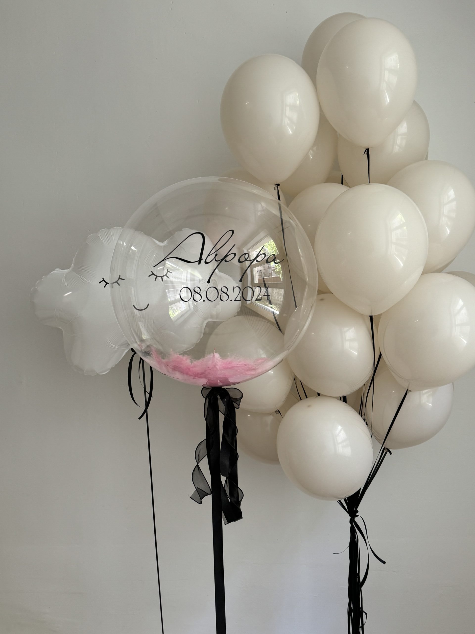 - Шар “Баблс” 60 см + надпись + перья – 1 шт