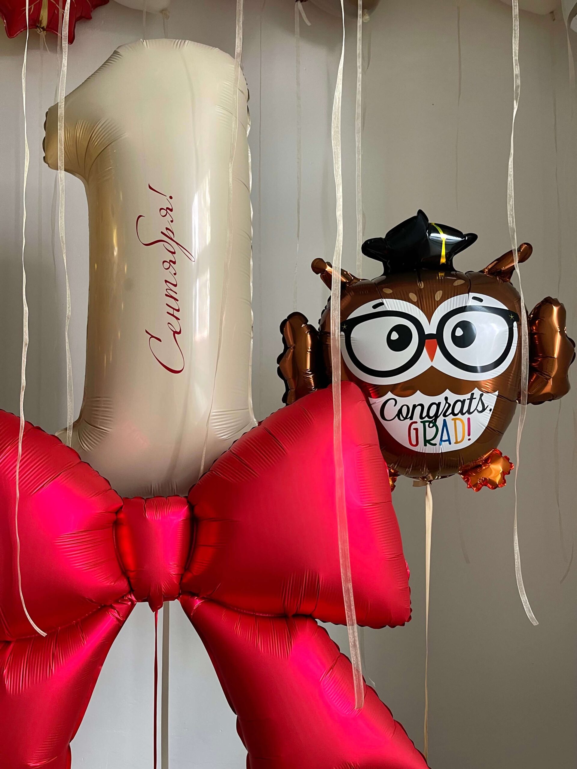 - Фонтан из 13 шаров (шар колокольчик с индивидуальной надписью, 2 шара фольгированных звезда, 10 шаров кристаллов с рисунком ассорти)