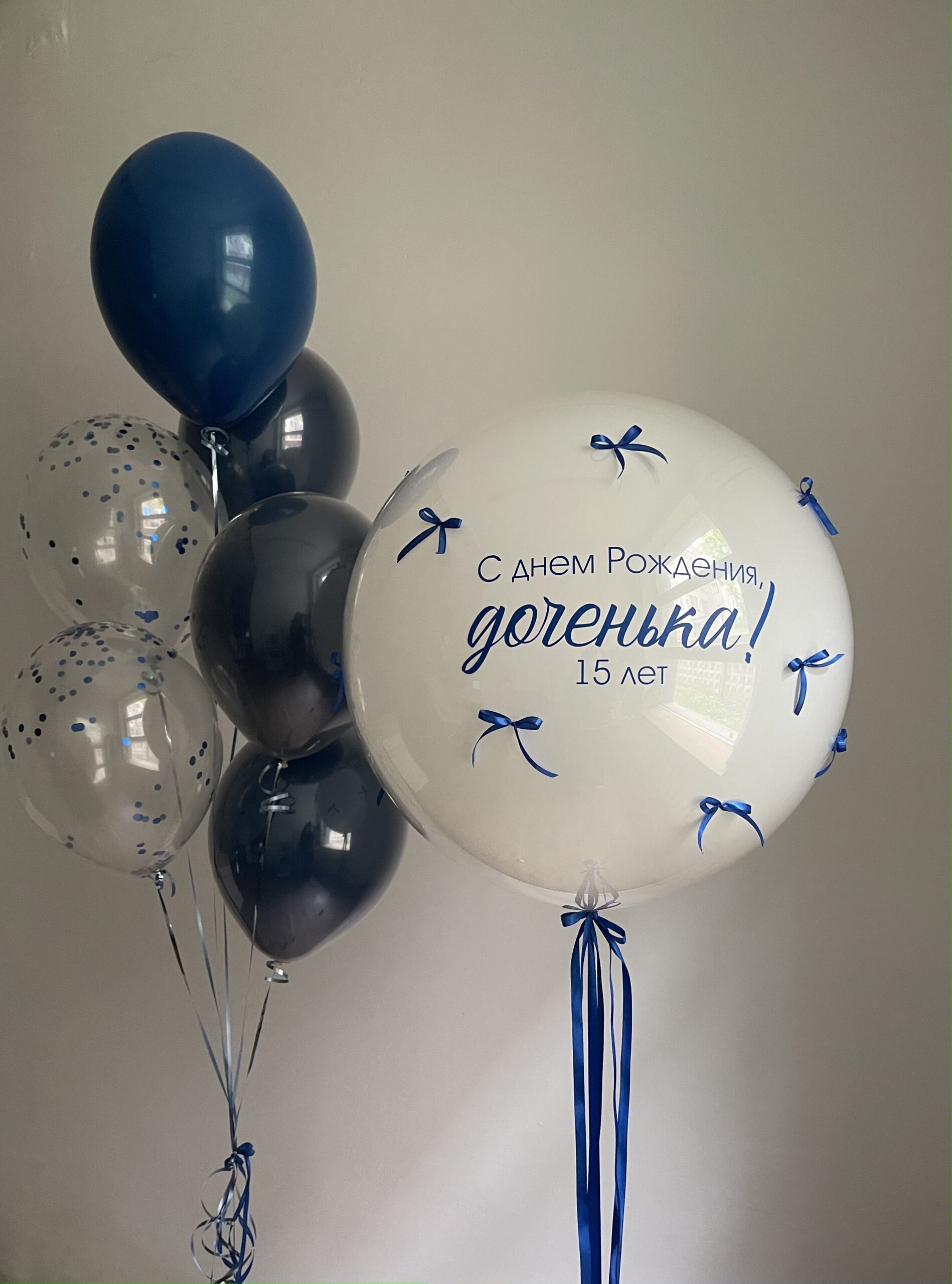 - Шар “Баблс дабл стафф” 70 см + надпись + бантики- 1 шт