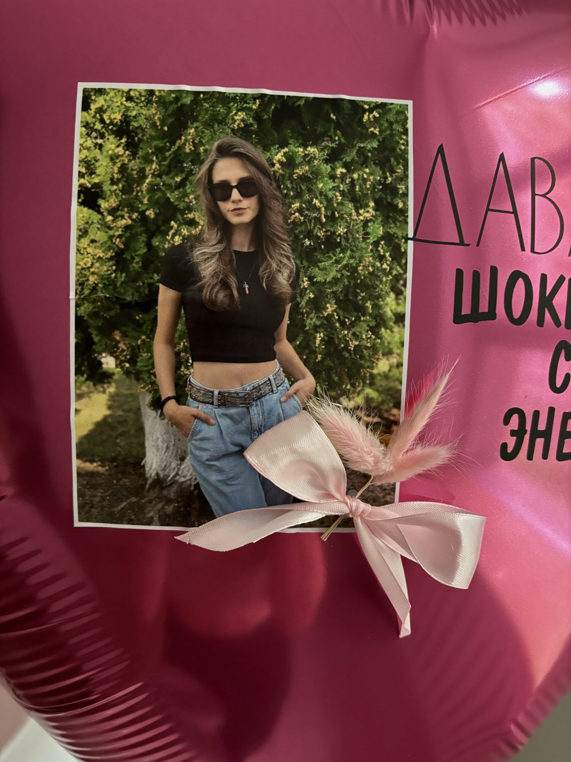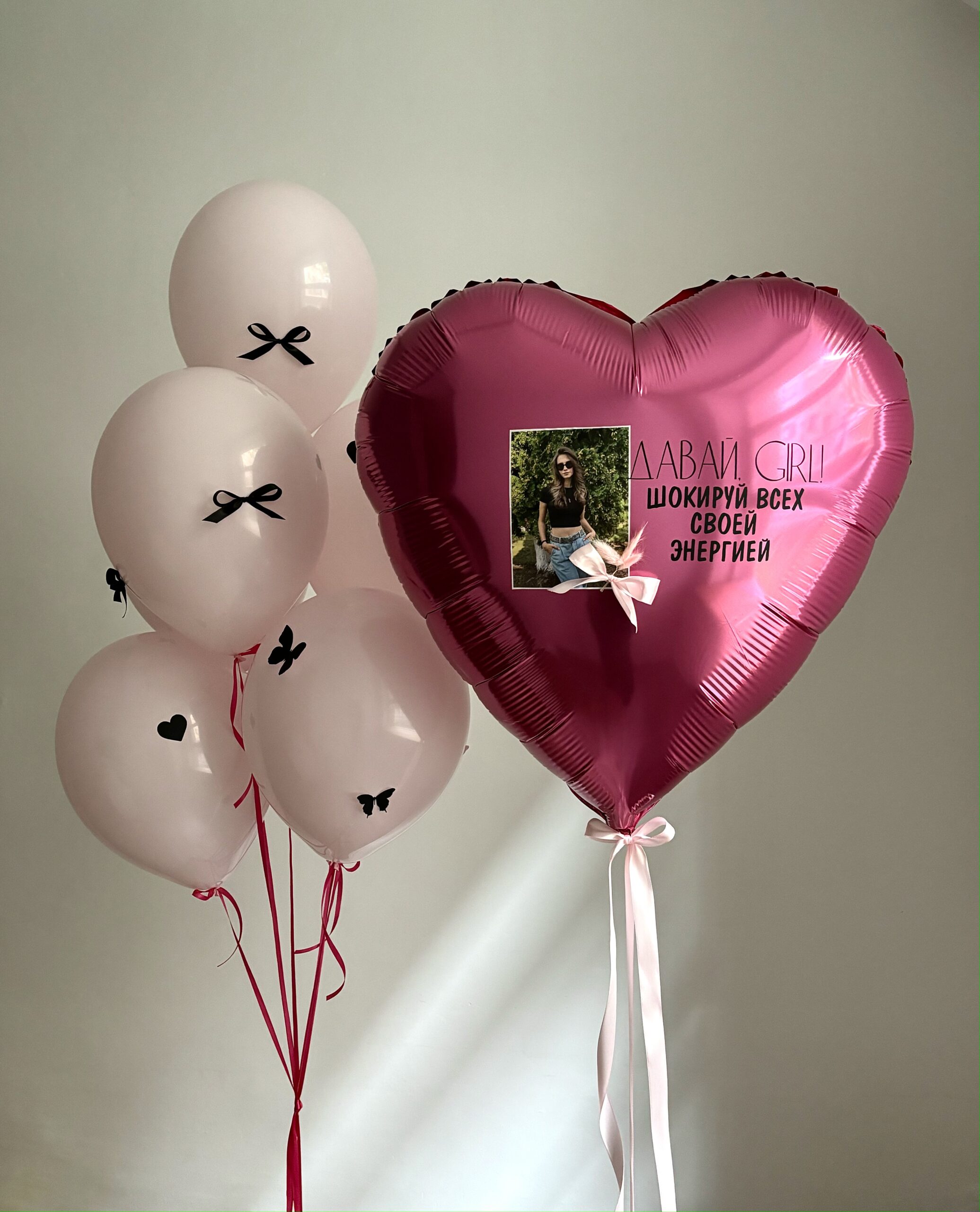 - Шар “Большой сердце” 90 см + надпись + фото + сухоцветы – 1 шт