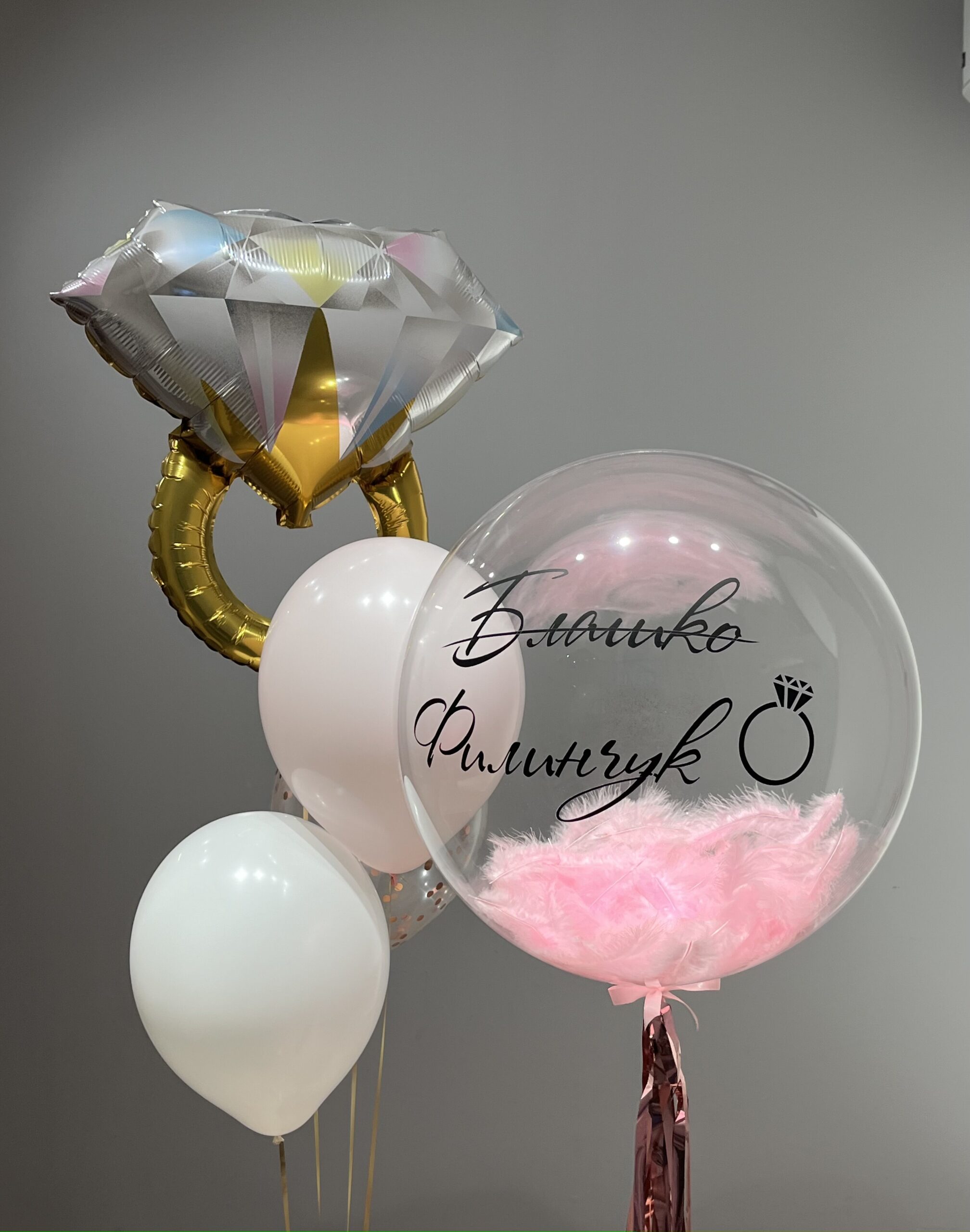 - Шар “Баблс” 60 см + надпись + перья – 1 шт