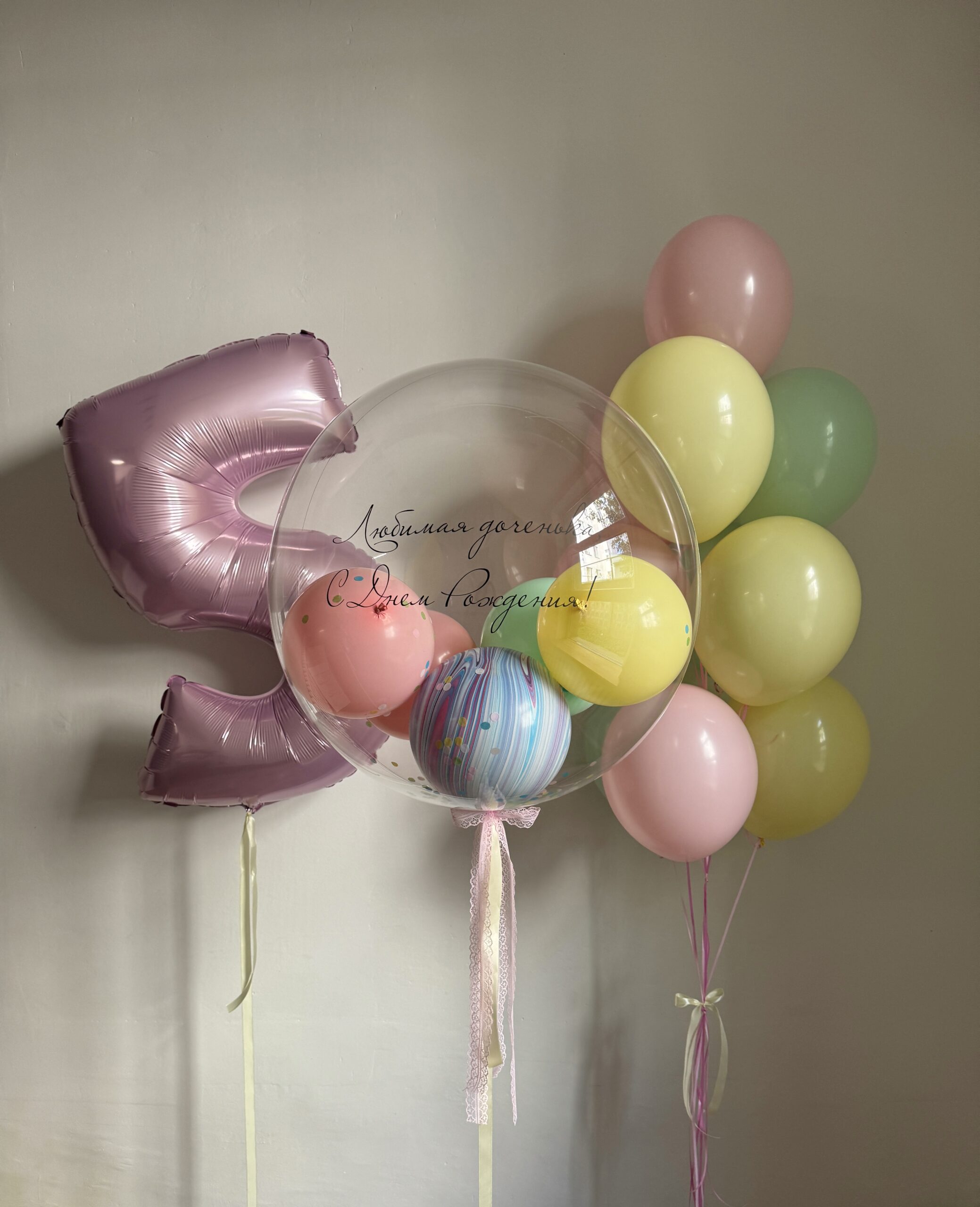 - Шар “Баблс” 60 см + надпись + мини-шарики – 1 шт