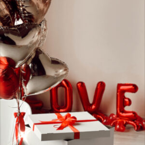 - Большая коробка 70х70х70 см с нанесенными поздравительными надписями