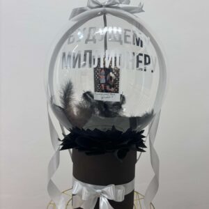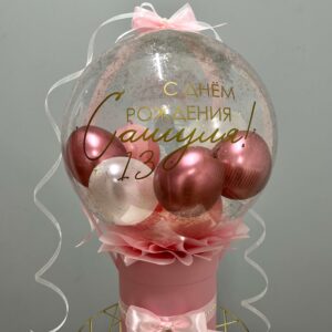 В коробку можно положить подарок. Наполнение шарика может быть по выбору клиента, соответственно стоимость будет меняться, уточняйте у оператора.